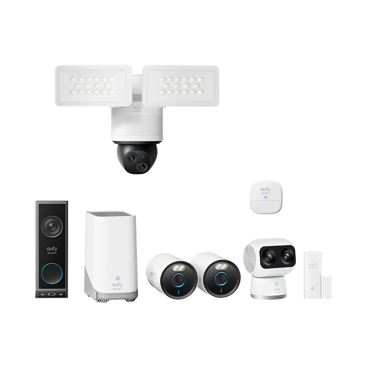 - Floodlight Camera E340 × 1: Dual cameras with 3K resolution and 360° coverage with pan and tilt to keep track of detected people. 24/7 surveillance means it's always on and always recording.