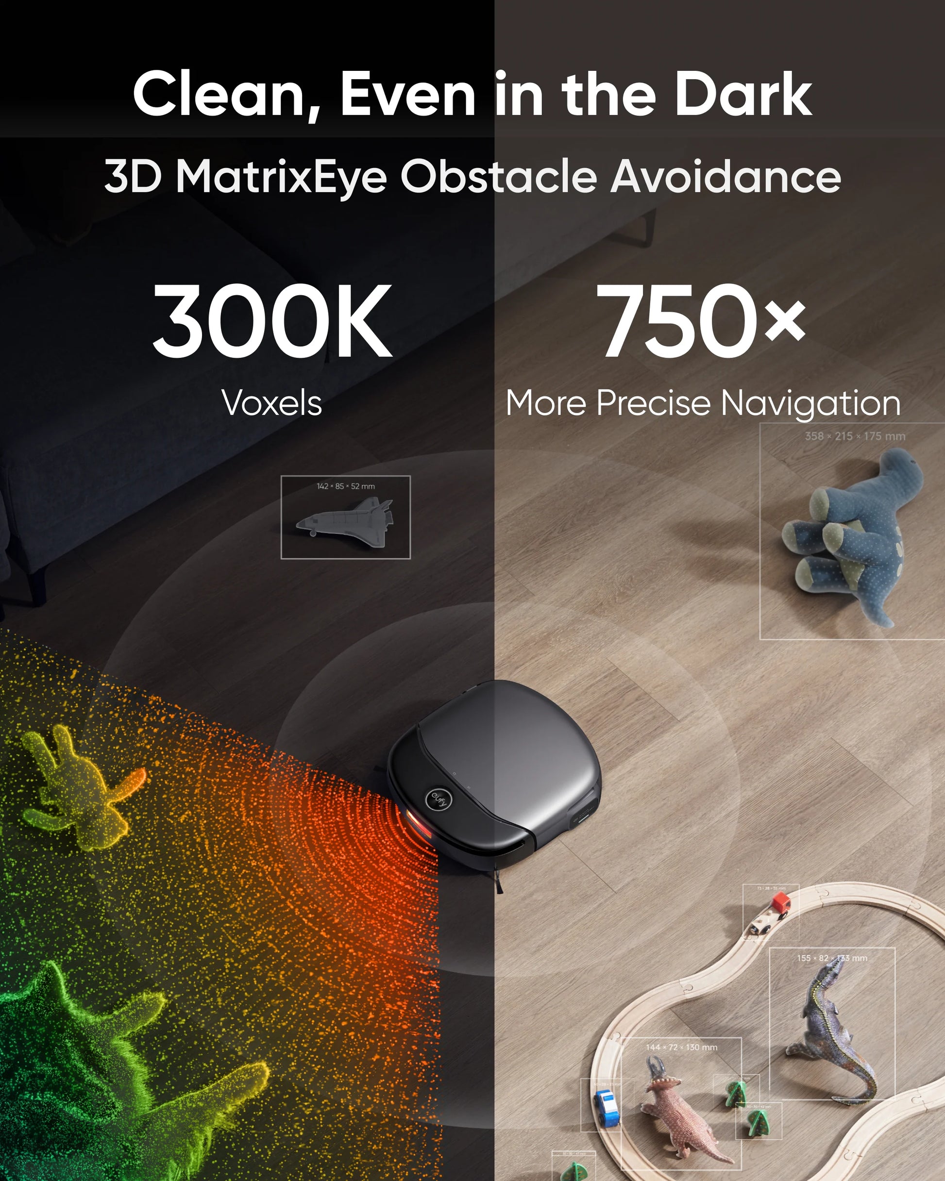 - 3D MatrixEye™ Obstacle Avoidance: S1 Pro’s advanced obstacle avoidance system, including Active Binocular Infrared Imaging Technology and an RGB Camera, mimics human vision. TrueCourse™ Mapping employs powerful dToF LiDAR and 3D SLAM technology to create real-time home maps with unmatched speed and accuracy.