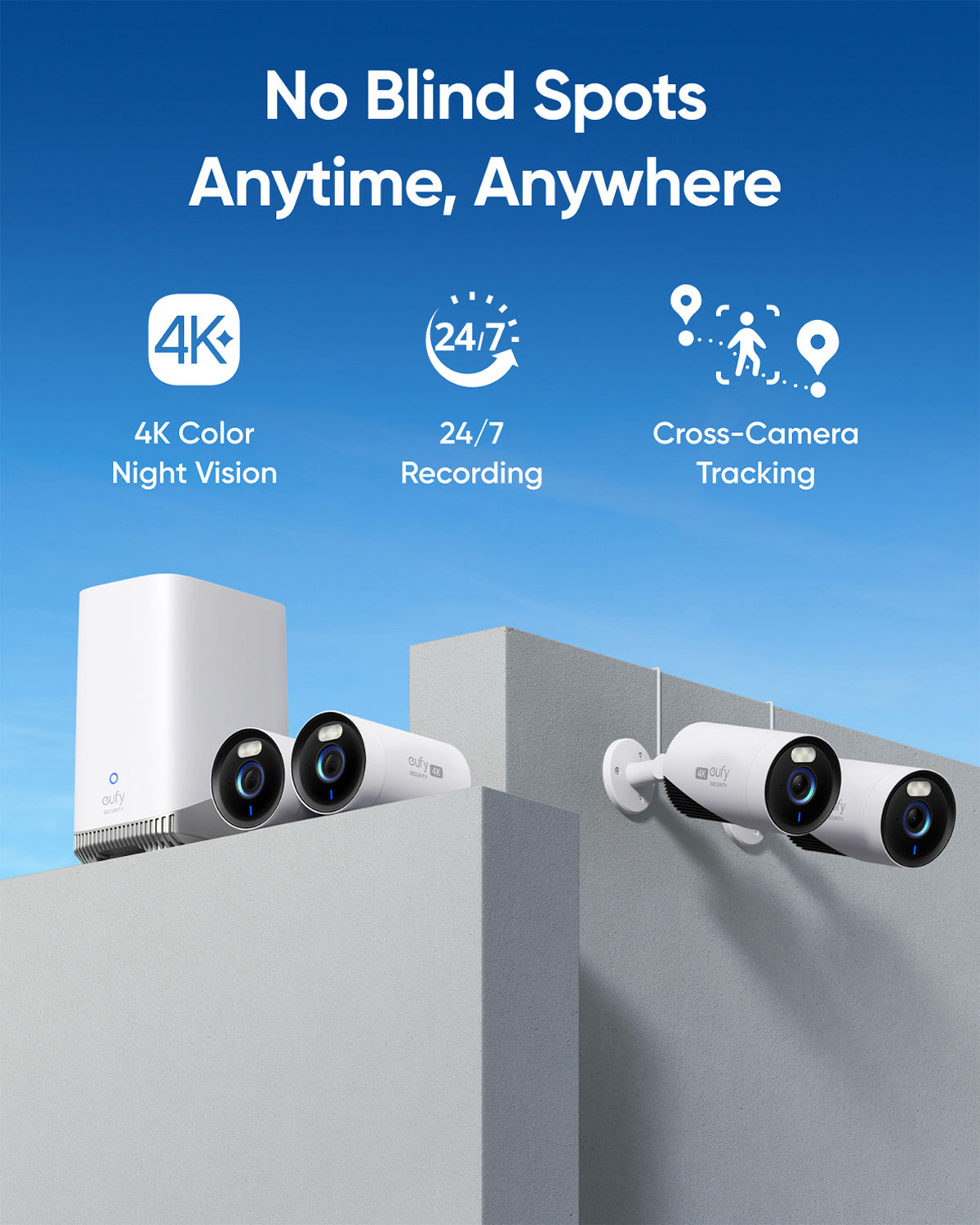 - Save Months of 24/7 Security Footage: With eufyCam E330, your data is protected with advanced encryption, putting you in control*. A 1 TB storage* drive is included which allows saving 24/7 recordings from four eufyCam E330 for up to 10 days. Save up to 6 months of recordings by expanding the local storage* up to 16 TB.