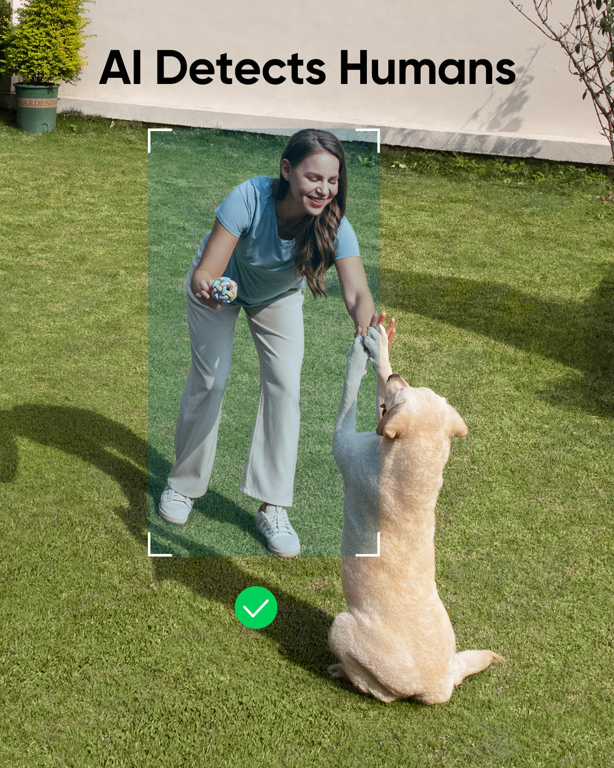 Human Detection: AI alerts* you of anyone in your yard, whether family, a courier, or a stranger. Connect to HomeBase 3 for individual facial recognition.