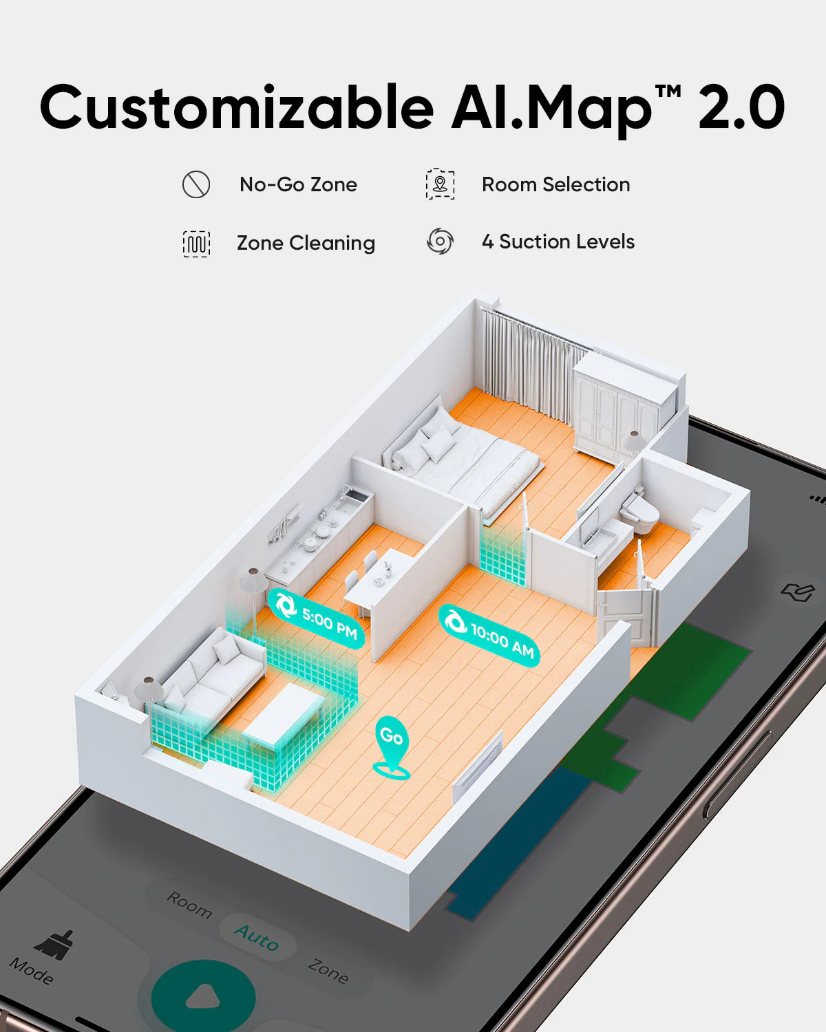 - Customizable AI.Map™ 2.0: Use the app to select specific rooms to clean, set up No-Go Zones, and use Multi-Floor Mapping for homes with more than one floor.
