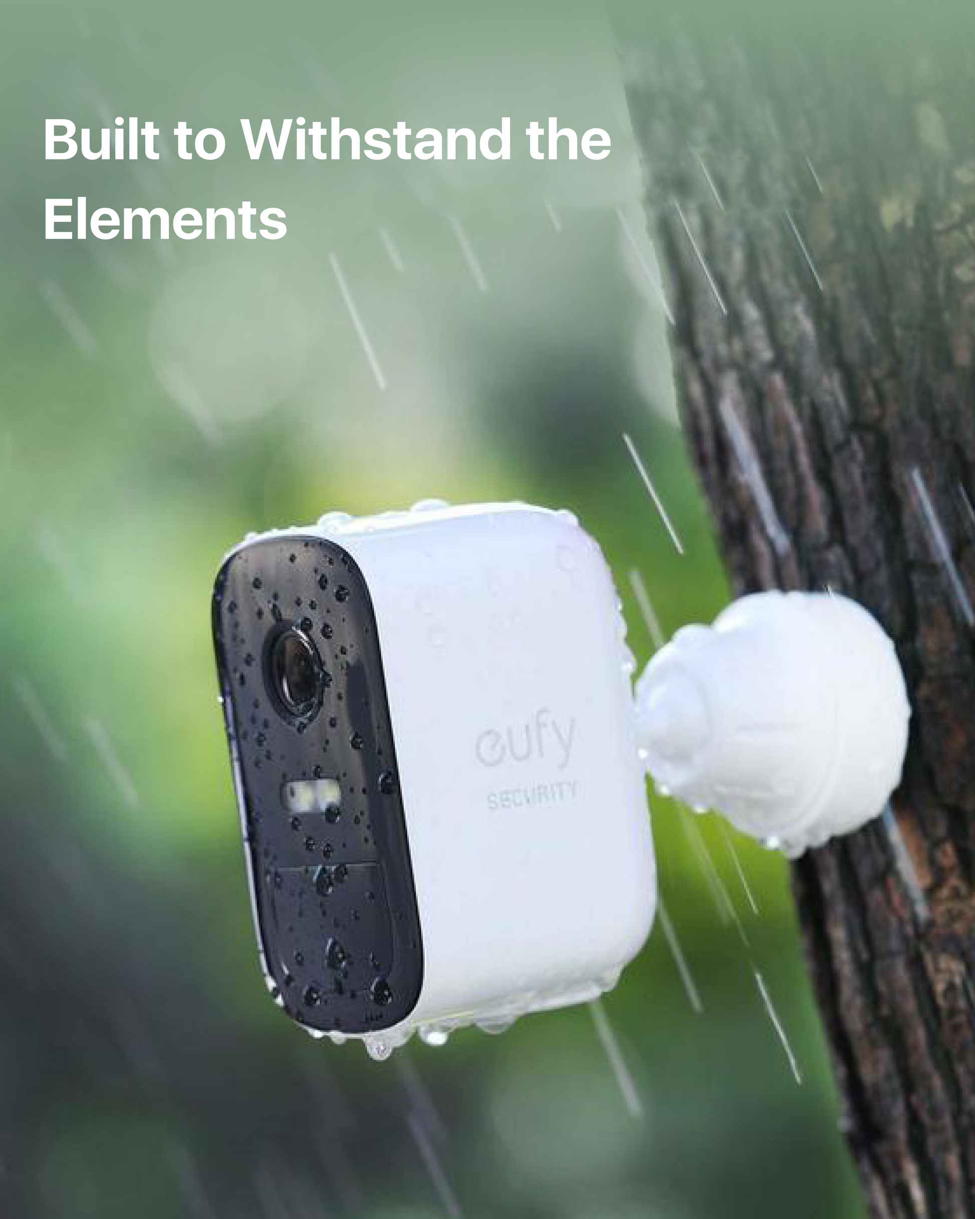 Ready for Any Weather - With an IP67 weatherproof-rating, eufyCam 2C is built to withstand the elements.